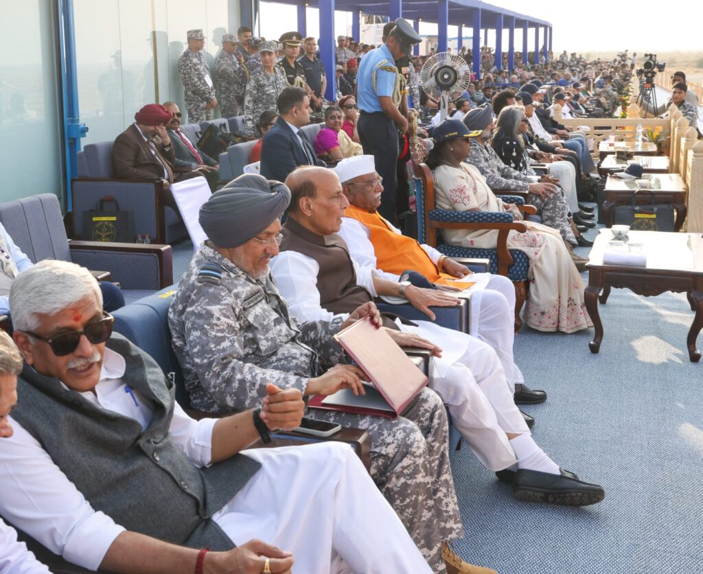The President of India, Smt. Droupadi Murmu graced the Fire Power Demonstration as the Chief Guest, accompanied by esteemed dignitaries including the Hon’ble Governor of Rajasthan, Shri Haribhau Kisanrao Bagde, Hon’ble Raksha Mantri, Shri Rajnath Singh, Hon’ble Minister of Civil Aviation, Shri Kinjarapu Ram Mohan Naidu, Hon’ble Minister of Culture and Tourism, GS Shekhawat, Chief Information Commissioner, Shri Raj Kumar Goyal, Cabinet Secretary, Dr TV Somanathan, Chief of Defence Staff, Gen Anil Chauhan, Commanders-in-Chief of Indian Air Force and Indian Navy, Senior Officers of the three Services, Officers of the Centre and State Governments, DPSUS, Former Air Chiefs, Esteemed Veterans, Defence Attaches from friendly foreign countries, Indian and International media and School children.